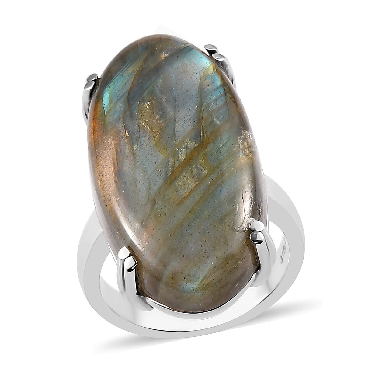 Malagasy Labradorite Solitaire Ring in Stainless Steel 29.65 ctw