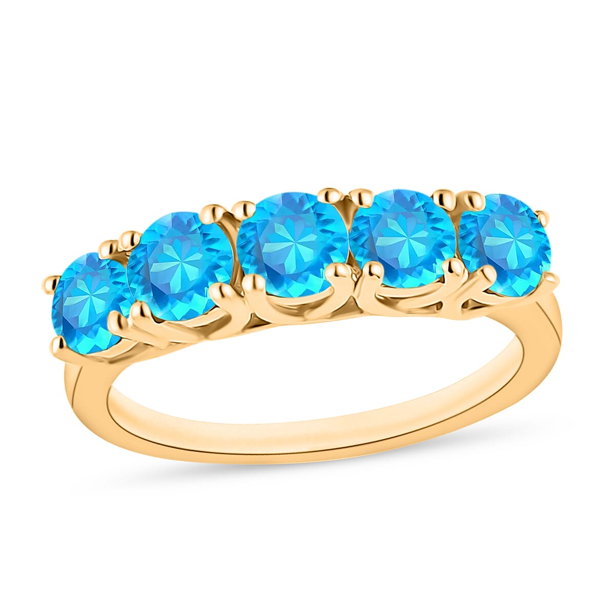 Malgache Neon Apatite 1.60 ctw 5 Stone Ring in 18K Vermeil Yellow Gold Over Sterling Silver (Size 9.0) (Del. in 10-12 Days)