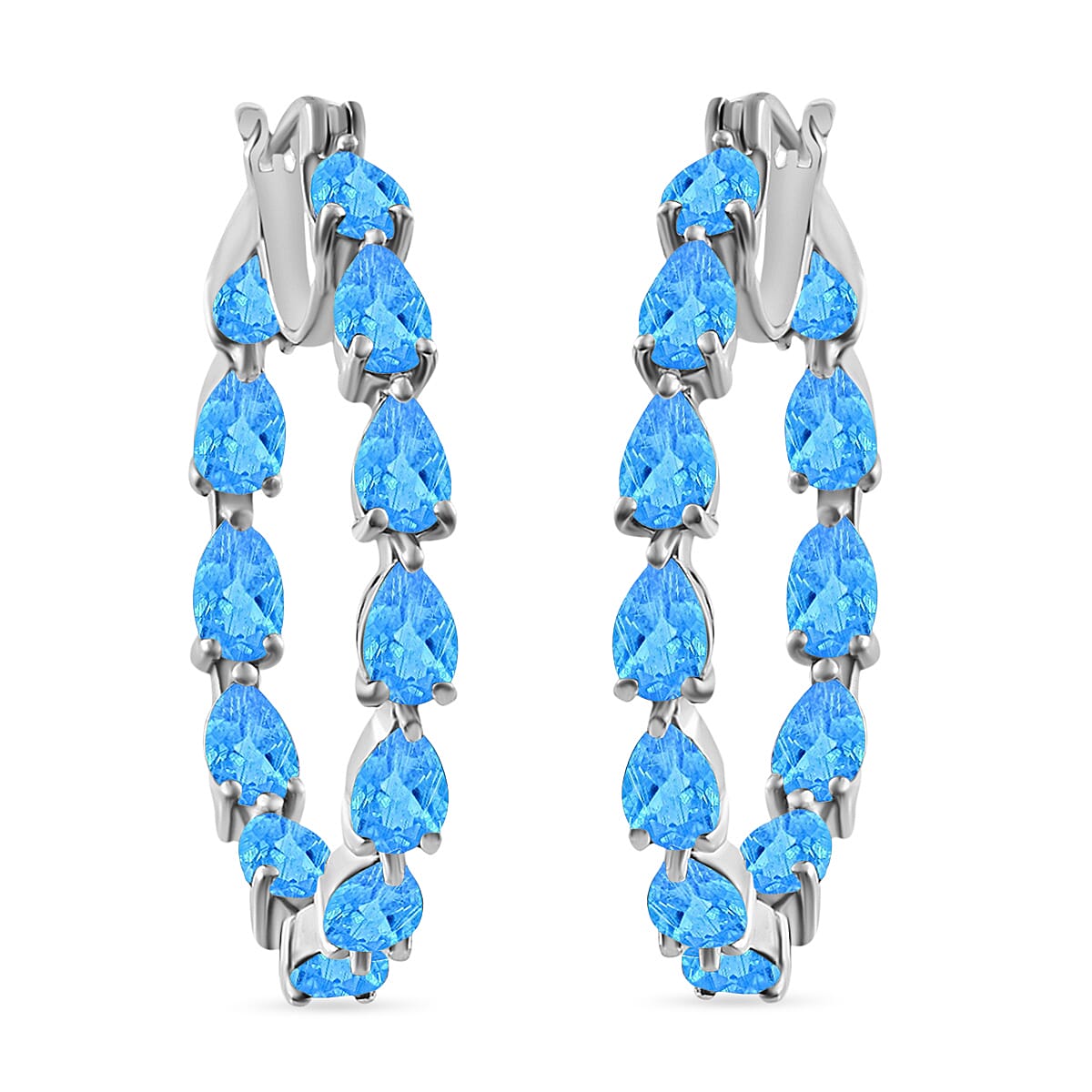 Malgache Neon Apatite 10.08 ctw Inside-out Hoop Earrings in Rhodium Over Sterling Silver (Del. in 10-12 Days)