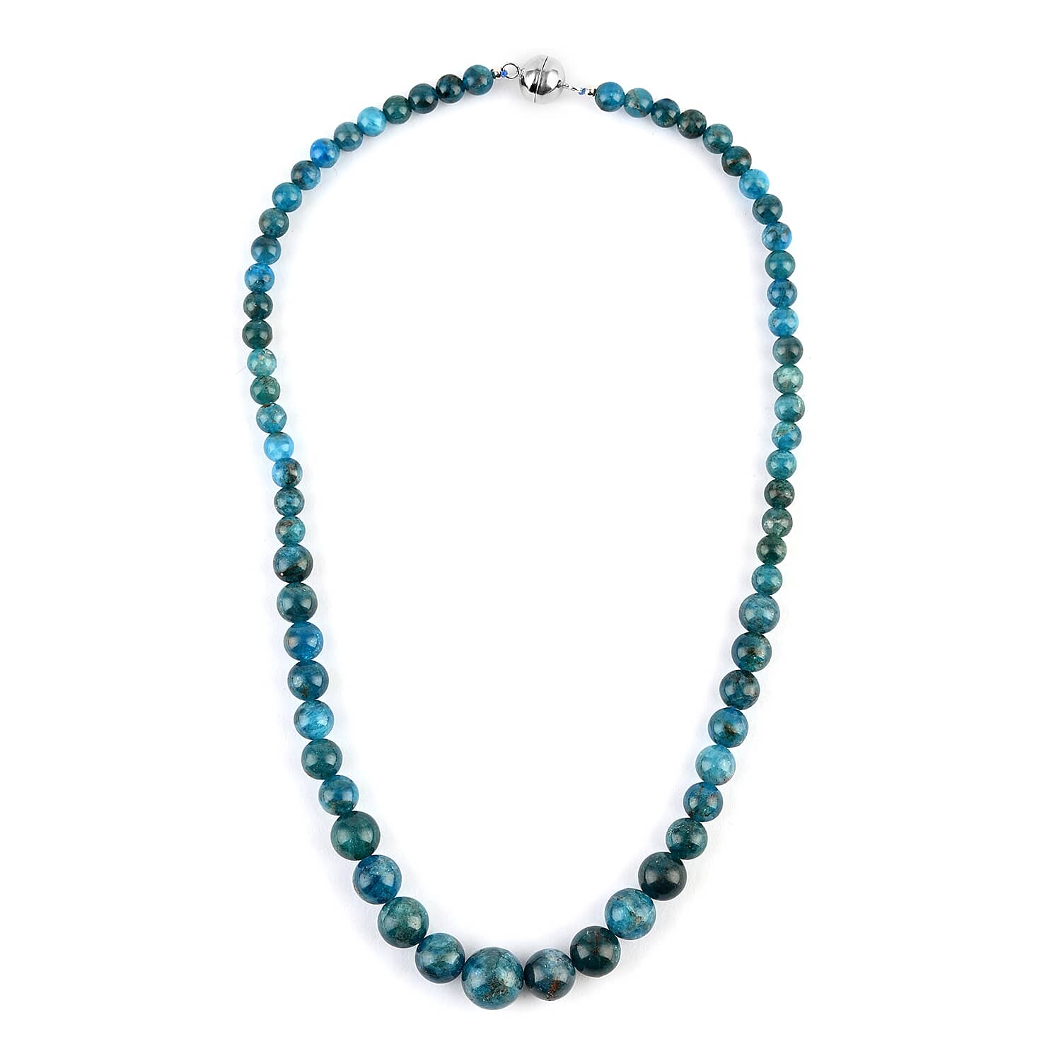 Malgache Neon Apatite Beaded Necklace 18 Inches with Magnetic Clasp in Silvertone 200.00 ctw