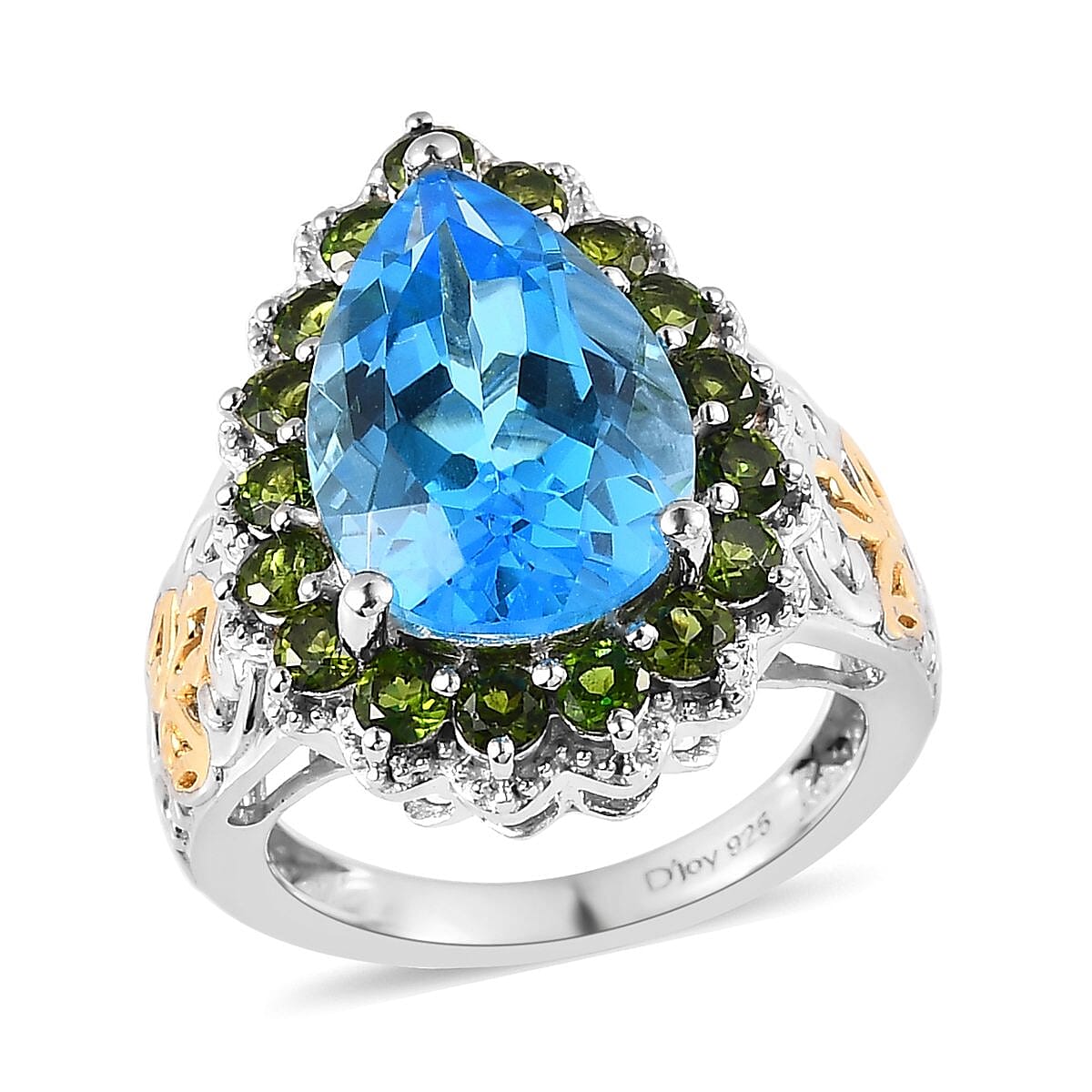 Marambaia Topaz and Chrome Diopside Halo Ring in Vermeil YG and Platinum Over Sterling Silver (Size 7.0) 8.75 ctw