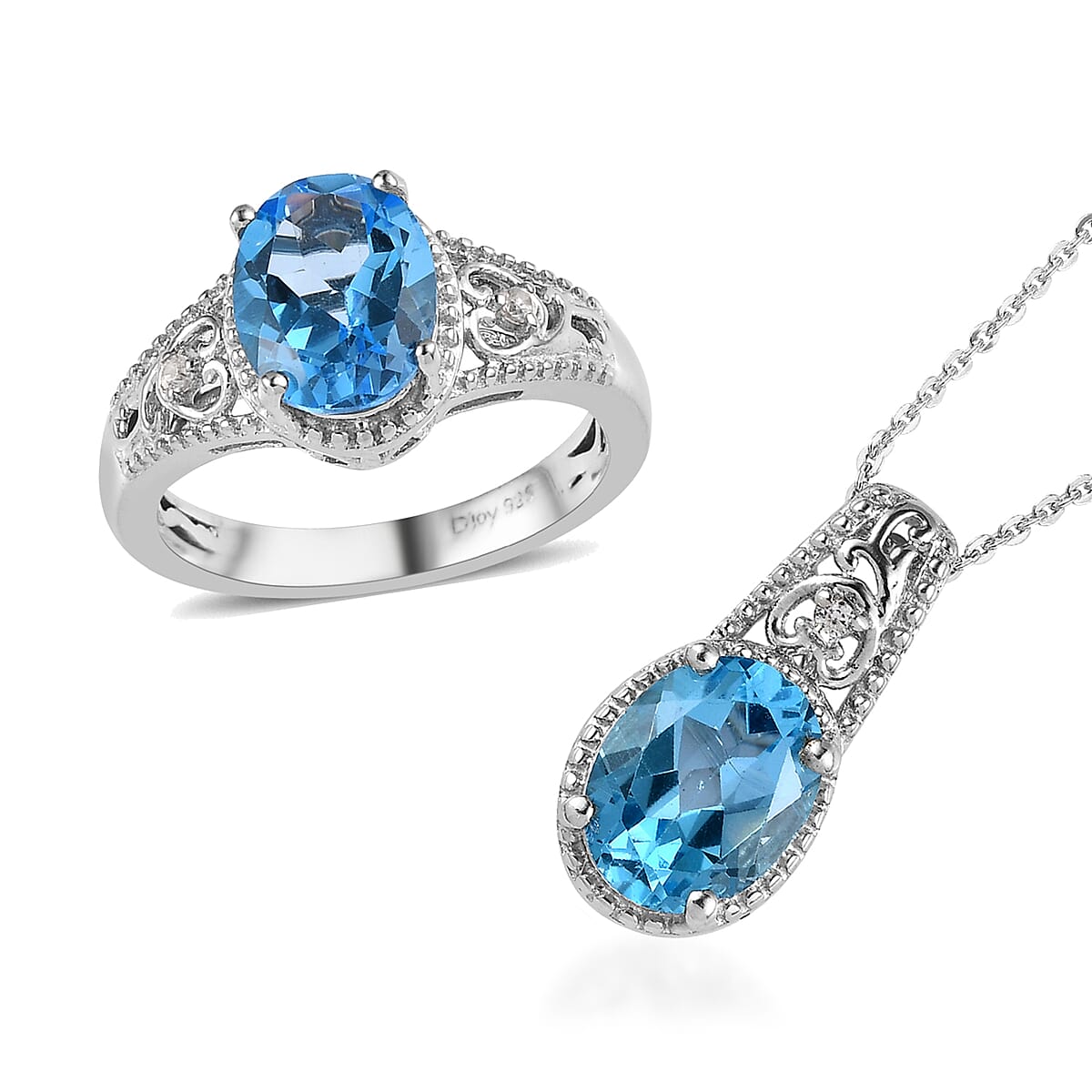Marambaia Topaz, White Zircon Ring (Size 10.0) and Pendant Necklace (20 Inches) in Platinum Over Sterling Silver 4.25 ctw