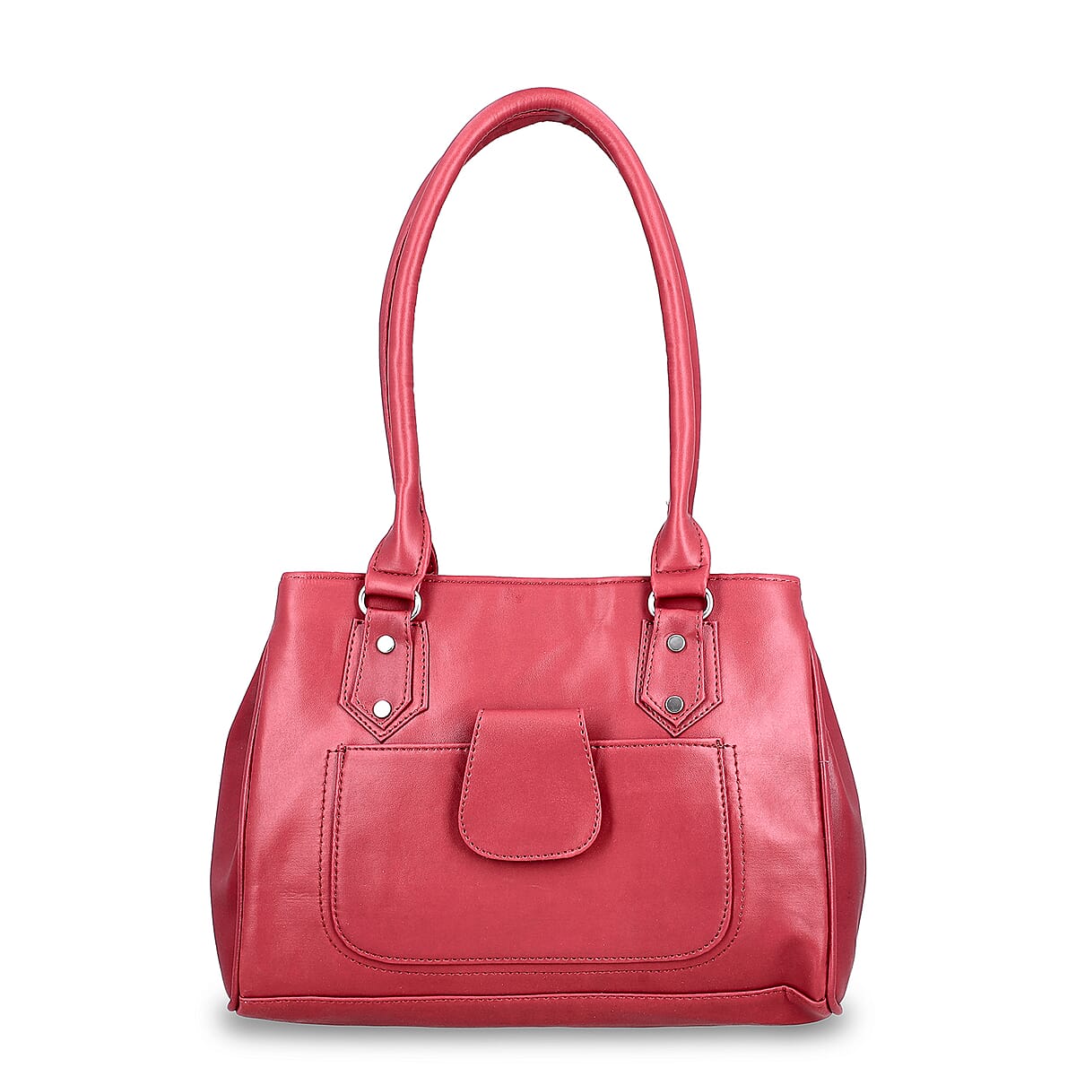 Maroon Faux Leather 3 Compartment Handbag with Dual Handles