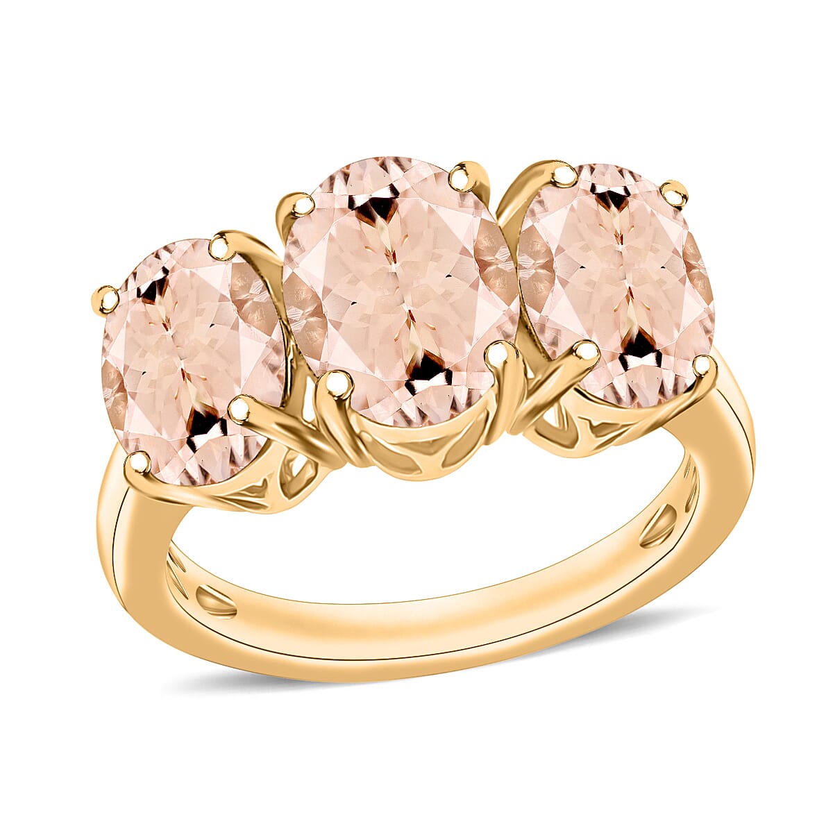 Marropino Morganite 5.00 ctw 3 Stone Ring in 18K Vermeil Yellow Gold Over Sterling Silver (Size 4.5) 4.50 Grams (Del. in 10-12 Days)