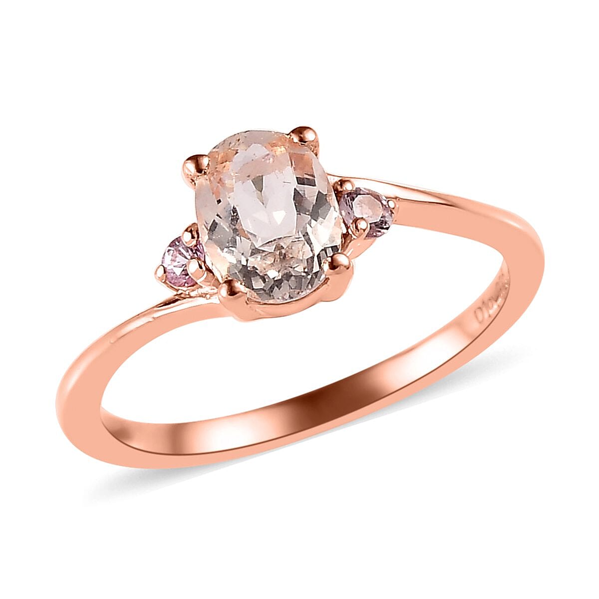Marropino Morganite and Madagascar Pink Sapphire Ring in Vermeil Rose Gold Over Sterling Silver (Size 7.0) 0.75 ctw