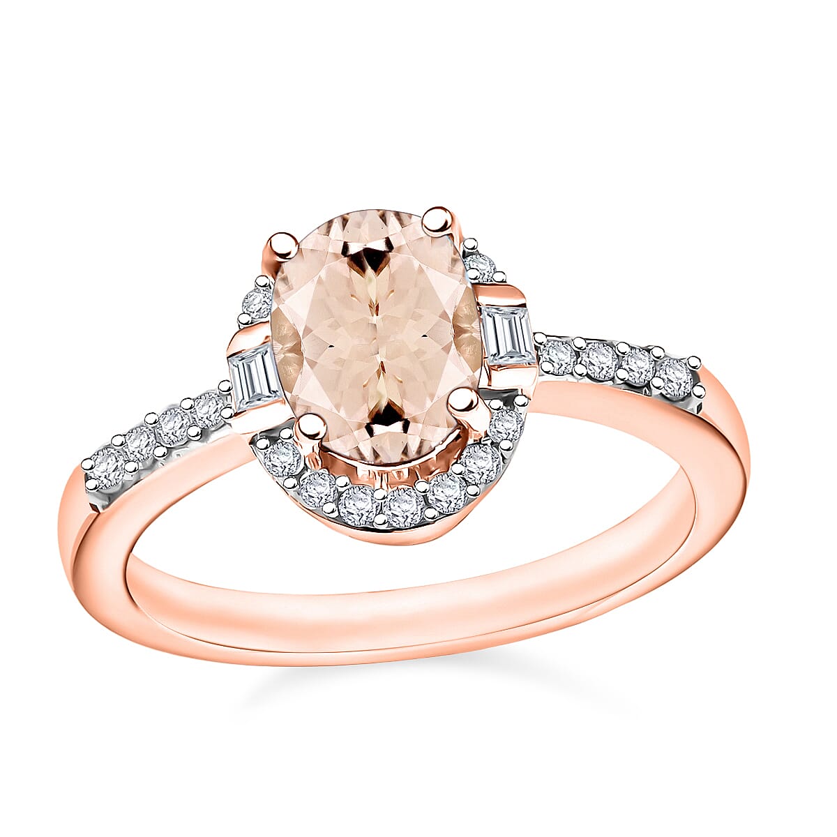 Marropino Morganite and Moissanite Ring in 18K Vermeil Rose Gold Over Sterling Silver (Size 7.0) 1.80 ctw (Del. in 10-12 Days)