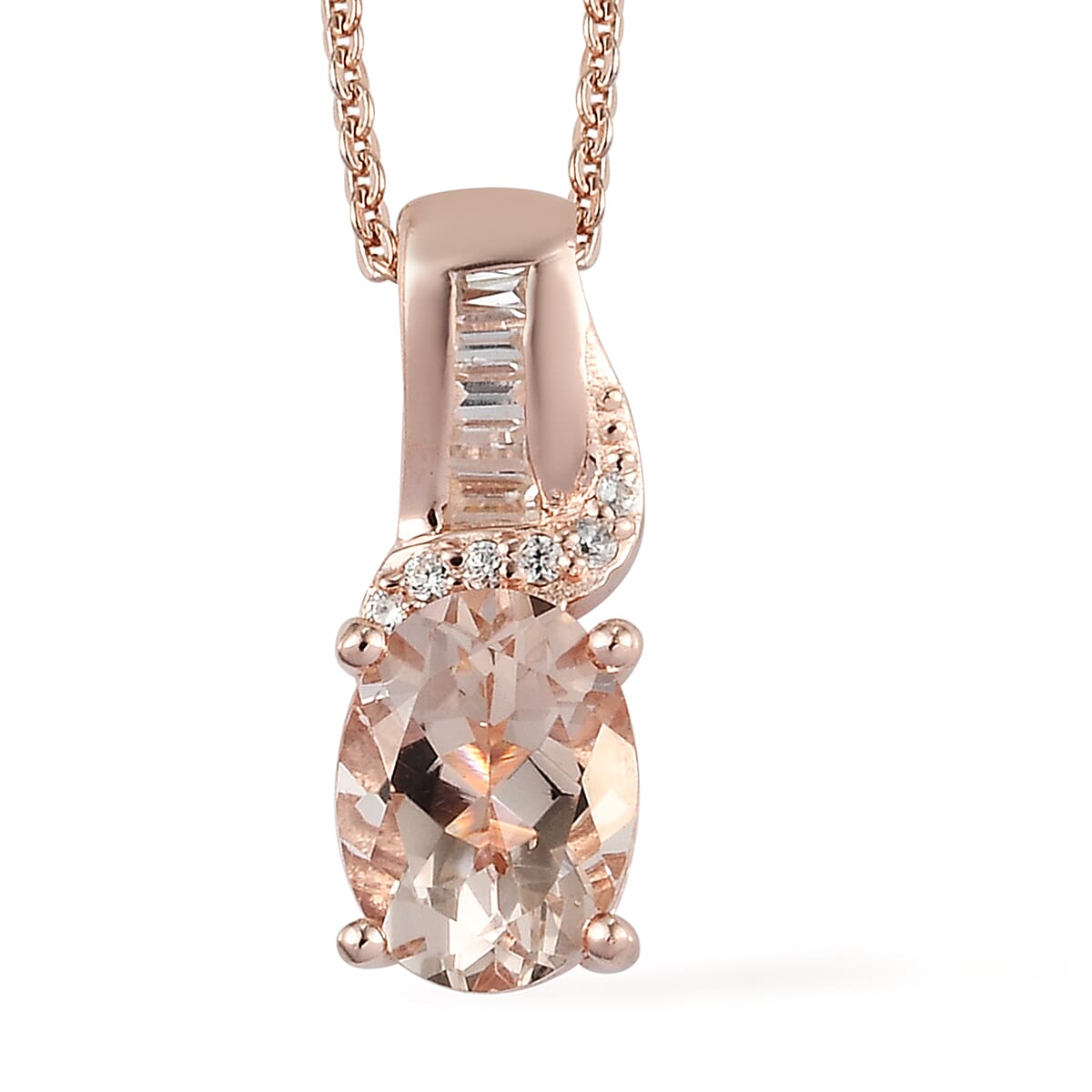 Marropino Morganite and Natural White Zircon Pendant Necklace 20 Inches in Vermeil Rose Gold Over Sterling Silver 1.15 ctw