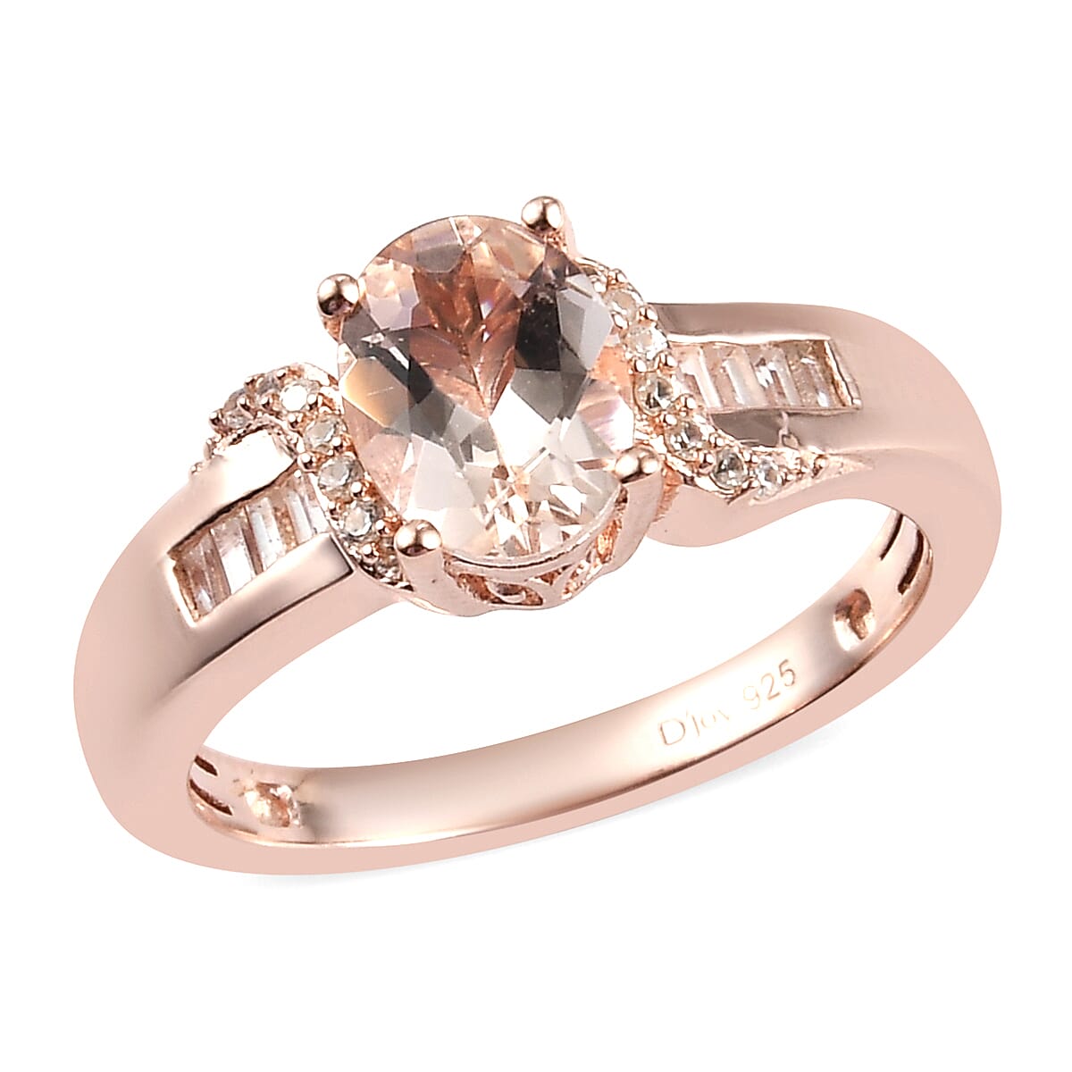 Marropino Morganite and Natural White Zircon Ring in Vermeil Rose Gold Over Sterling Silver (Size 8.0) 1.25 ctw