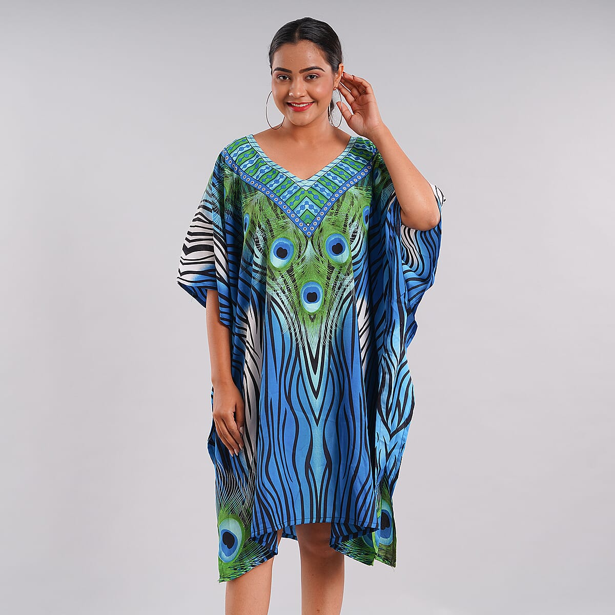 Marva's Personal Pick JOVIE Turquoise Peacock V-Neck Kaftan - One Size Fits Most