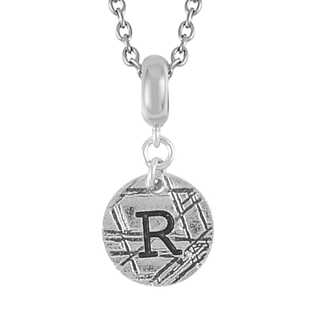 Marvelous Meteorite Initial R Pendant in Sterling Silver with Stainless Steel Necklace 20 Inches