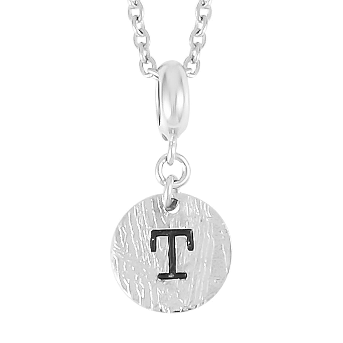 Marvelous Meteorite Initial T Pendant in Sterling Silver with Stainless Steel Necklace 20 Inches