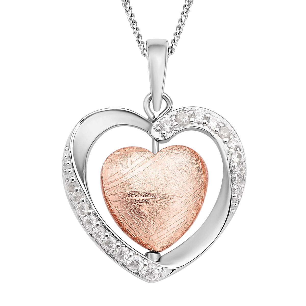 Marvelous Meteorites and White Zircon Heart Pendant Necklace 18 Inches in Rhodium Over Sterling Silver 0.30 ctw