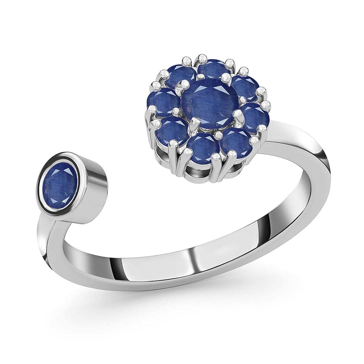 Masoala Sapphire (D) September Birthstone Anxiety Spinner Openable Band Adjustable Ring in Platinum Over Sterling Silver (Size 6.0) 1.10 ctw