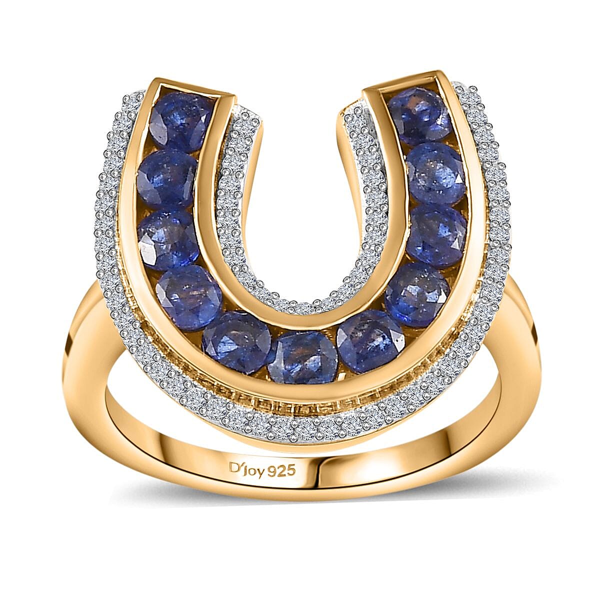 Masoala Sapphire (FF) and White Zircon Horseshoe Ring in Vermeil Yellow Gold Over Sterling Silver (Size 6.0) 2.35 ctw