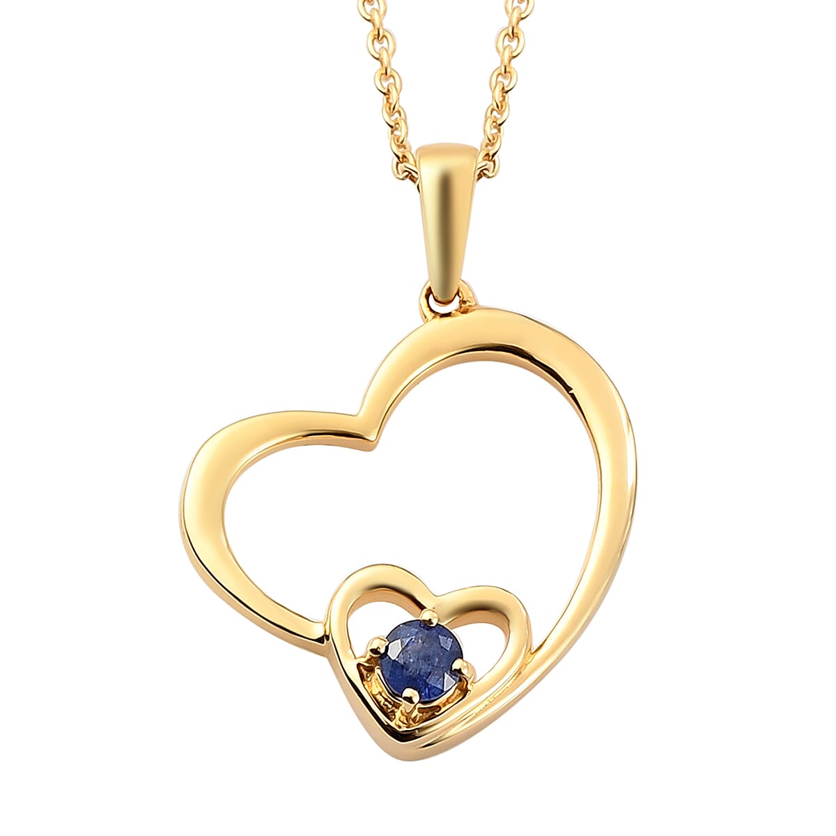 Masoala Sapphire Mom & Child Double Heart Pendant Necklace 20 Inches in Vermeil Yellow Gold Over Sterling Silver 0.40 ctw