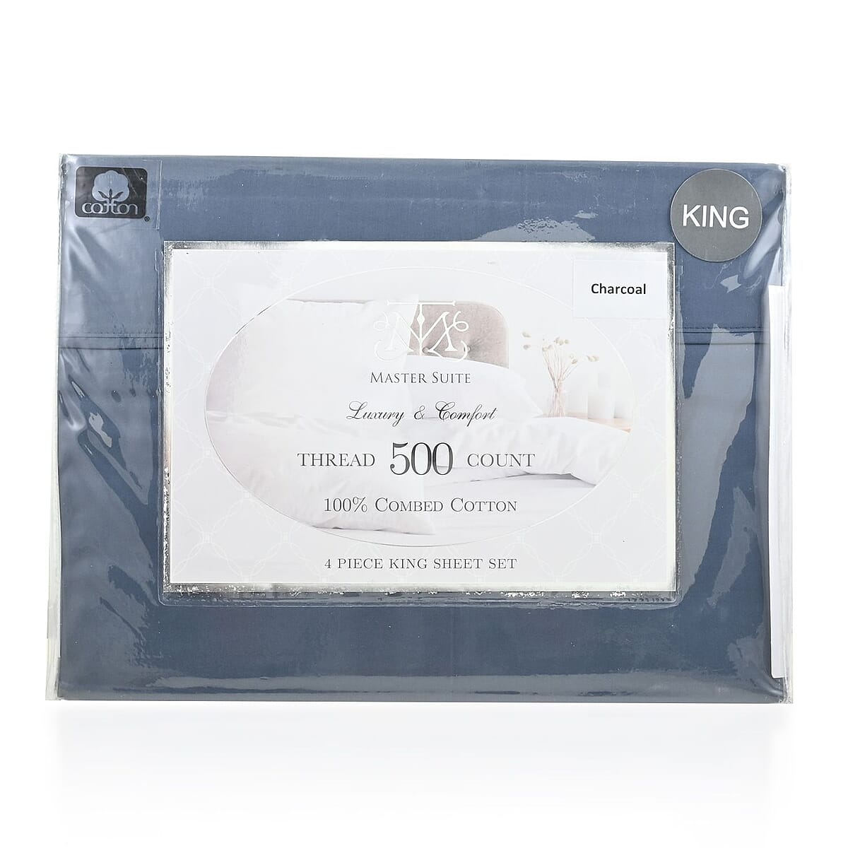 MASTER SUITE Charcoal 500TC 100% Cotton Sheet Set -King