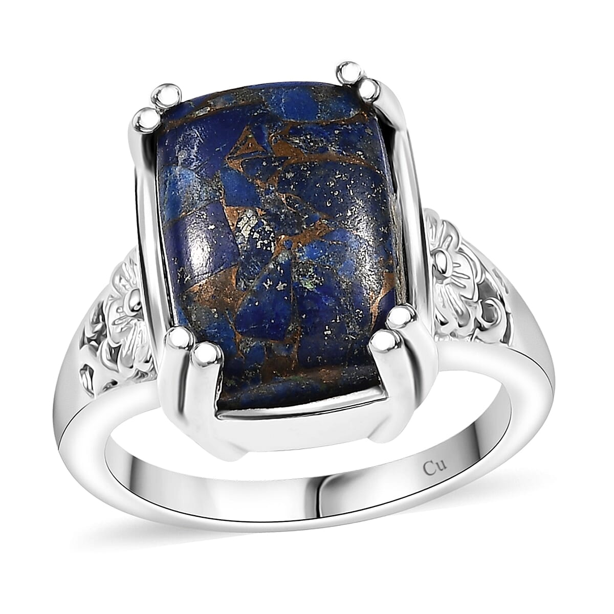 Matrix Lapis Lazuli 7.50 ctw Solitaire Ring in Platinum Over Copper with Magnet (Size 8.0)