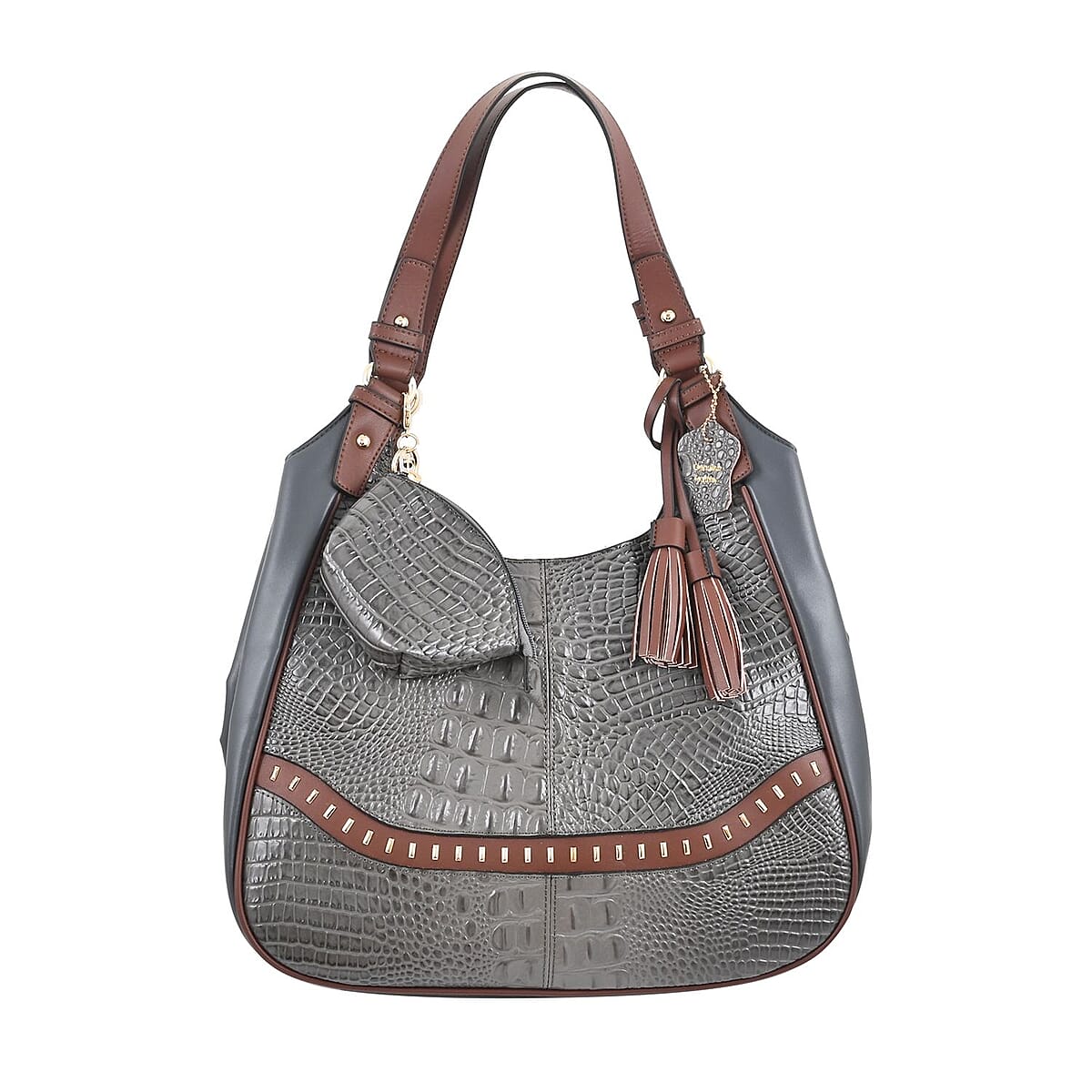 MC Jade Gray Croco Embossed Genuine Leather Tote with Matching Coin Pouch