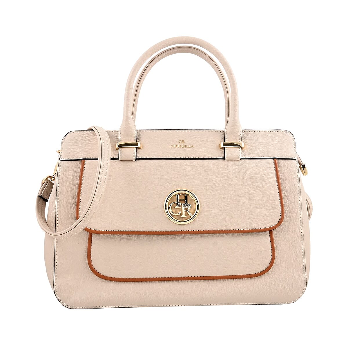 MC Saffiano Cream Front Flap Pocket Faux Leather Satchel Bag