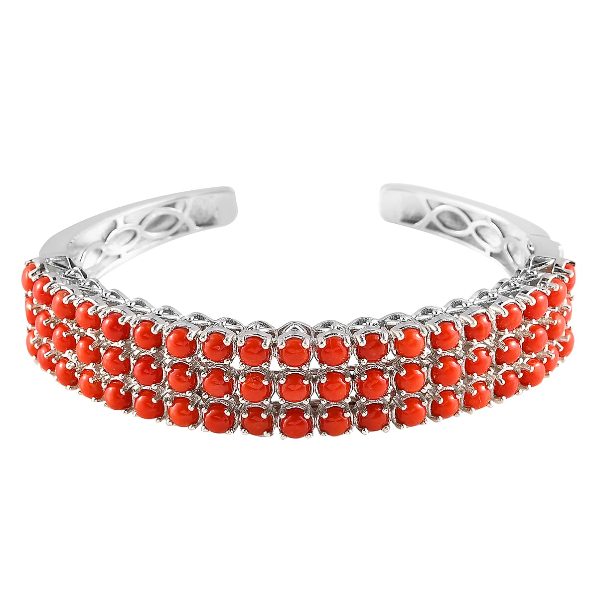 Mediterranean Coral Multi Row Cuff Bracelet in Platinum Over Sterling Silver