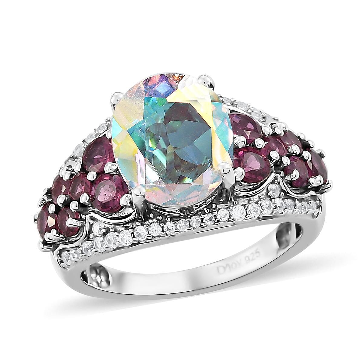 Mercury Mystic Topaz and Multi Gemstone Ring in Platinum Over Sterling Silver 5.75 ctw
