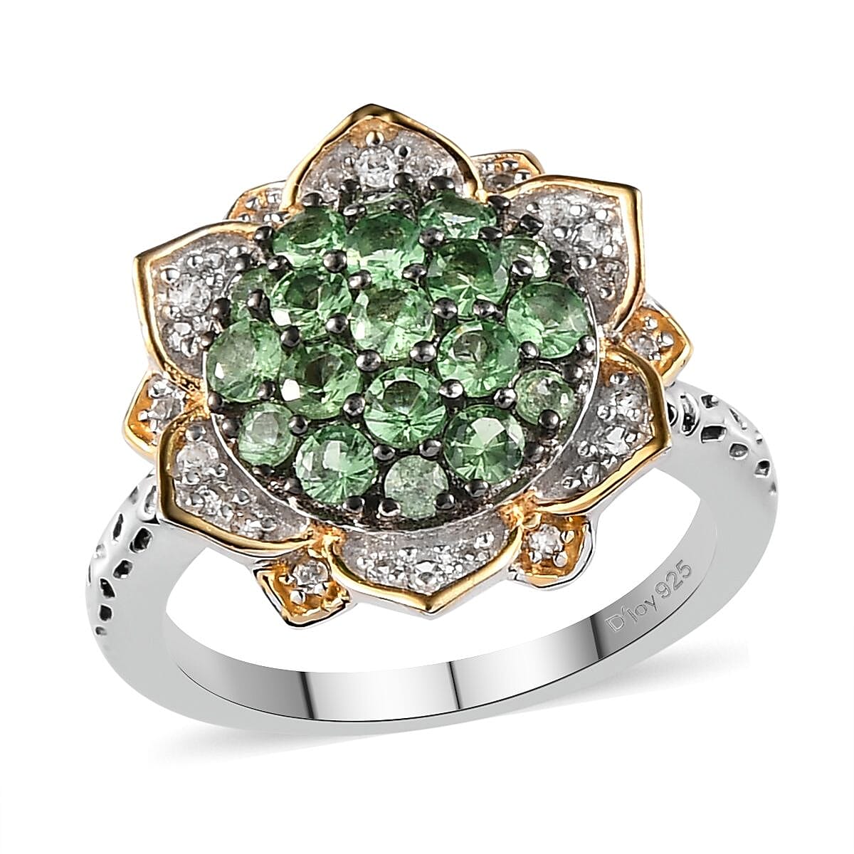 Merelani Mint Garnet and Natural White Zircon Floral Ring in Vermeil Yellow Gold and Platinum Over Sterling Silver (Size 6.0) 1.15 ctw
