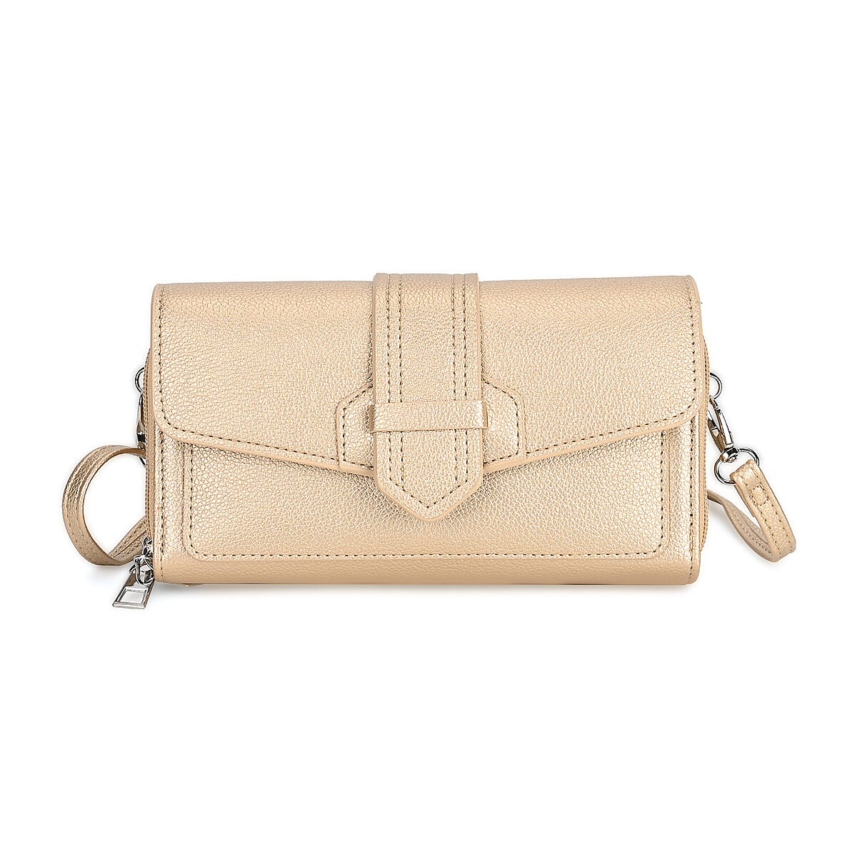 Metallic Gold Faux Leather Crossbody Bag with Shoulder Strap