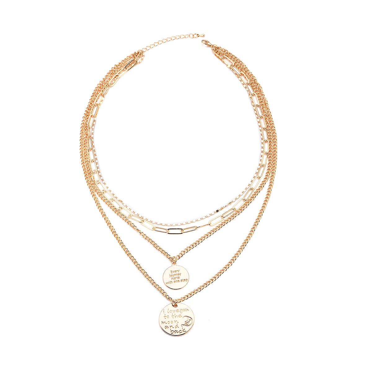 Step into a world with our exquisite metallic plate, engraved message & cameo charm layered link chain necklace. Meticulously crafted from robust, long-lasting metal, this necklace isn't just an ornament; it's a testament to timeless elegance and a pledge of solidarity. Your style shines with a deeper meaning and makes a difference with your choice.