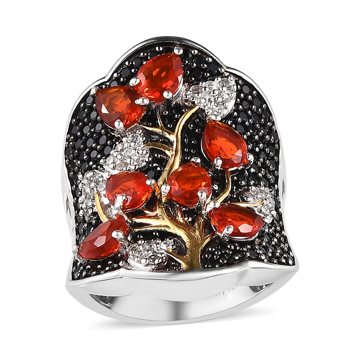 Mexican Cherry Fire Opal and Multi Gemstone Ring in Vermeil YG and Platinum Over Sterling Silver (Size 7.0) 3.25 ctw
