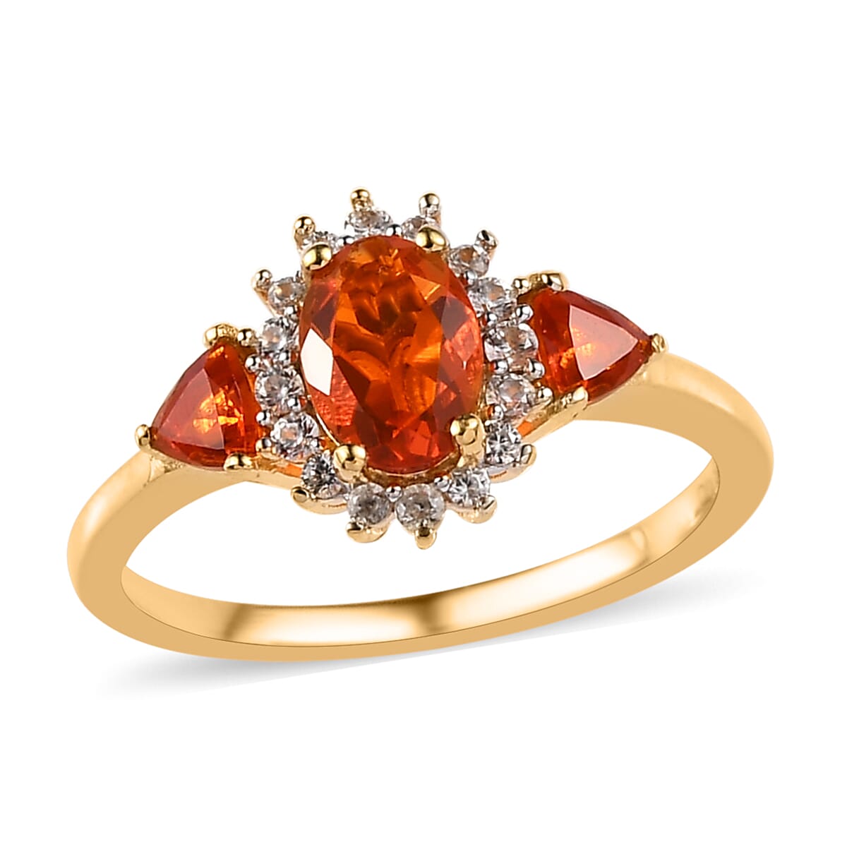 Mexican Fire Opal and White Zircon Floral Ring in Vermeil Yellow Gold Over Sterling Silver (Size 7.0) 0.90 ctw