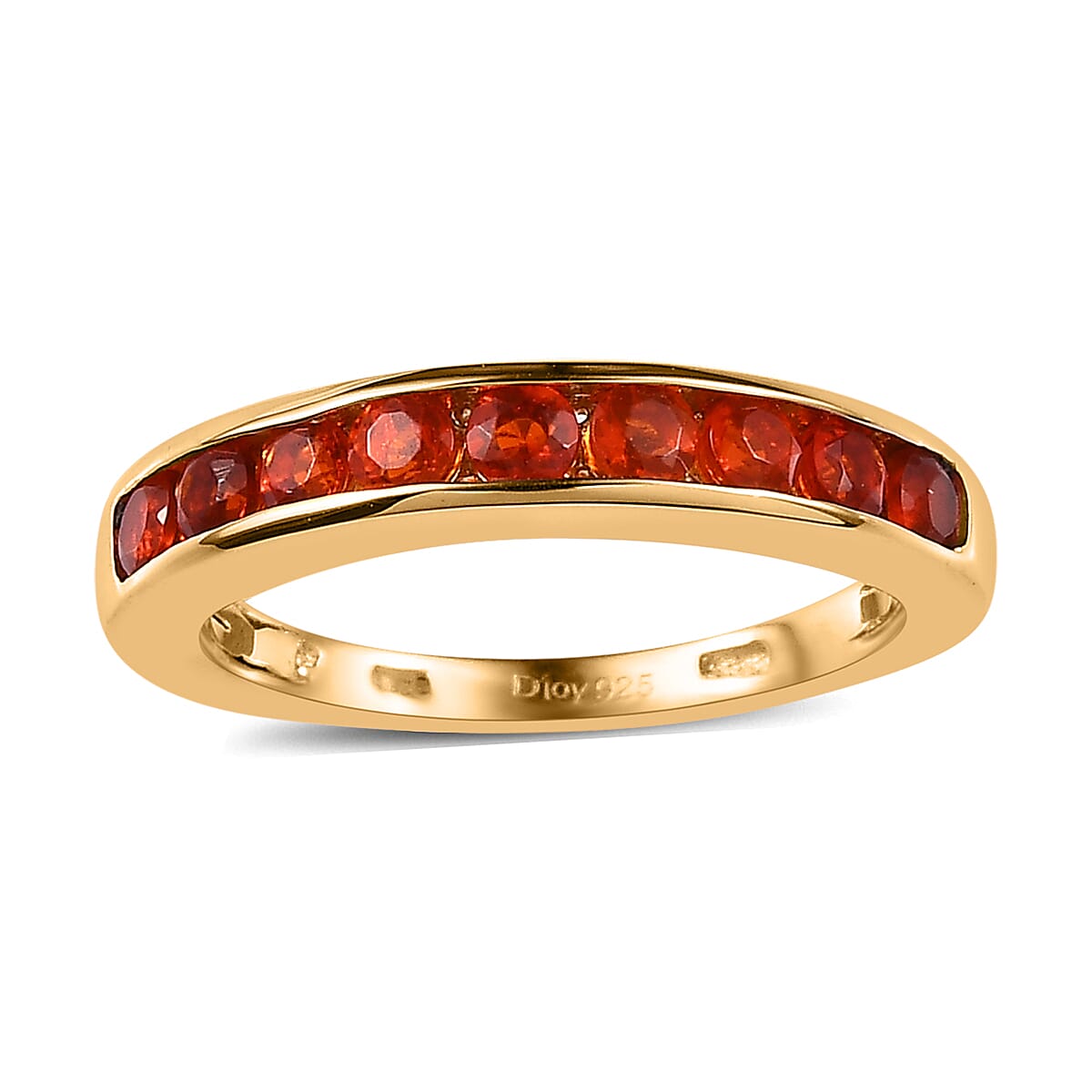 Mexican Fire Opal Half Eternity Band Ring in Vermeil Yellow Gold Over Sterling Silver (Size 5.0) 0.40 ctw