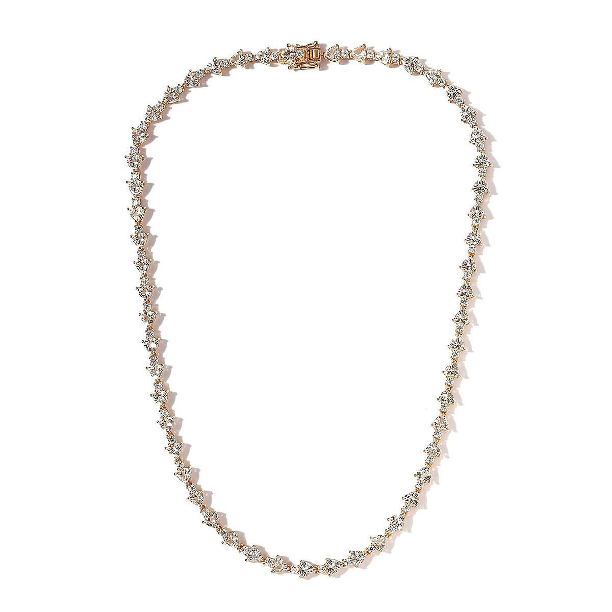 Mexican Hyalite Opal and Moissanite Tennis Necklace 18 Inches in Vermeil Yellow Gold Over Sterling Silver with Free Flash Light 20.00 ctw