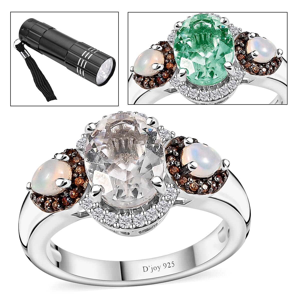 Mexican Hyalite Opal and Multi Gemstone Tri-Halo Ring in Platinum Over Sterling Silver (Size 10.0) 1.85 ctw