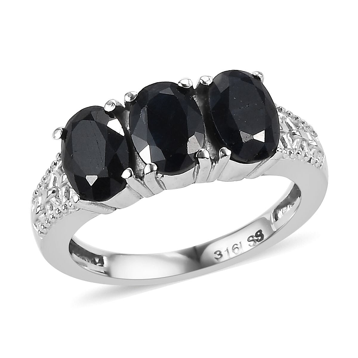 Midnight Sapphire 3 Stone Ring in Stainless Steel (Size 6.0) 3.20 ctw