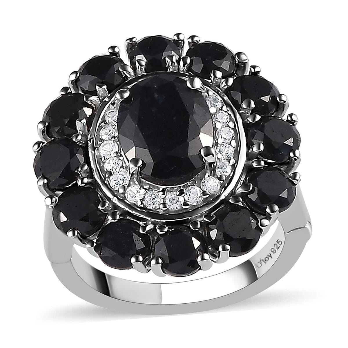 Midnight Sapphire and White Zircon Floral Ring in Platinum Over Sterling Silver (Size 7.0) 7.50 ctw
