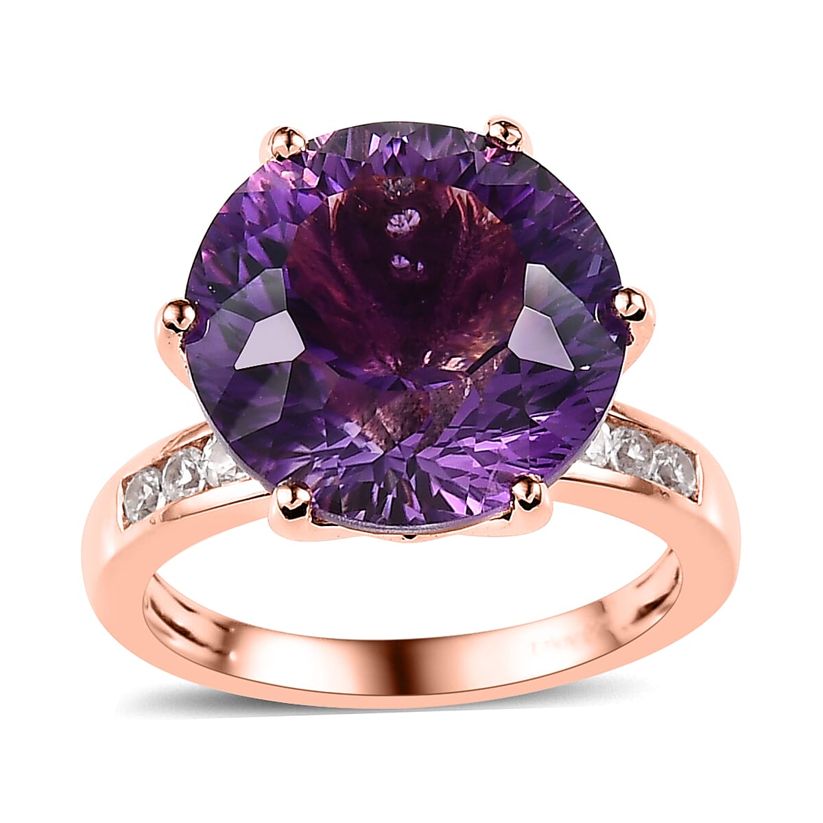 Millennium Cut African Amethyst Ring, White Zircon Accent Ring in Vermeil Rose Gold Over Sterling Silver, Amethyst Jewelry, Gifts For Her 10.60 ctw (Size 9.0)