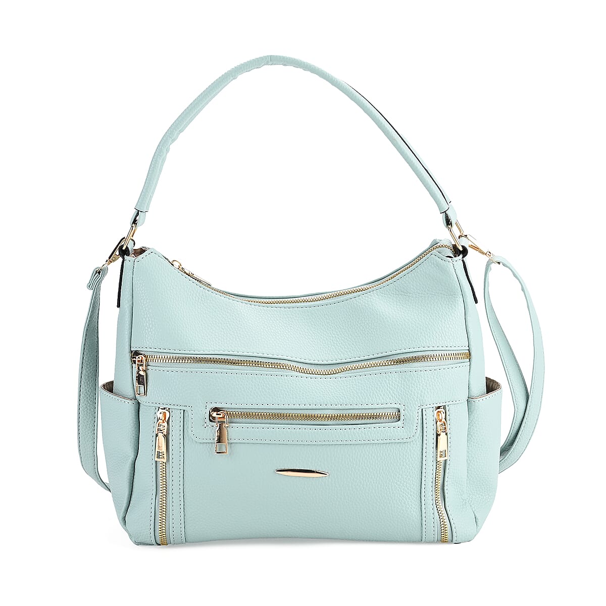 Mint Green Multi-Pocket Faux Leather Crossbody Bag with Shoulder Strap