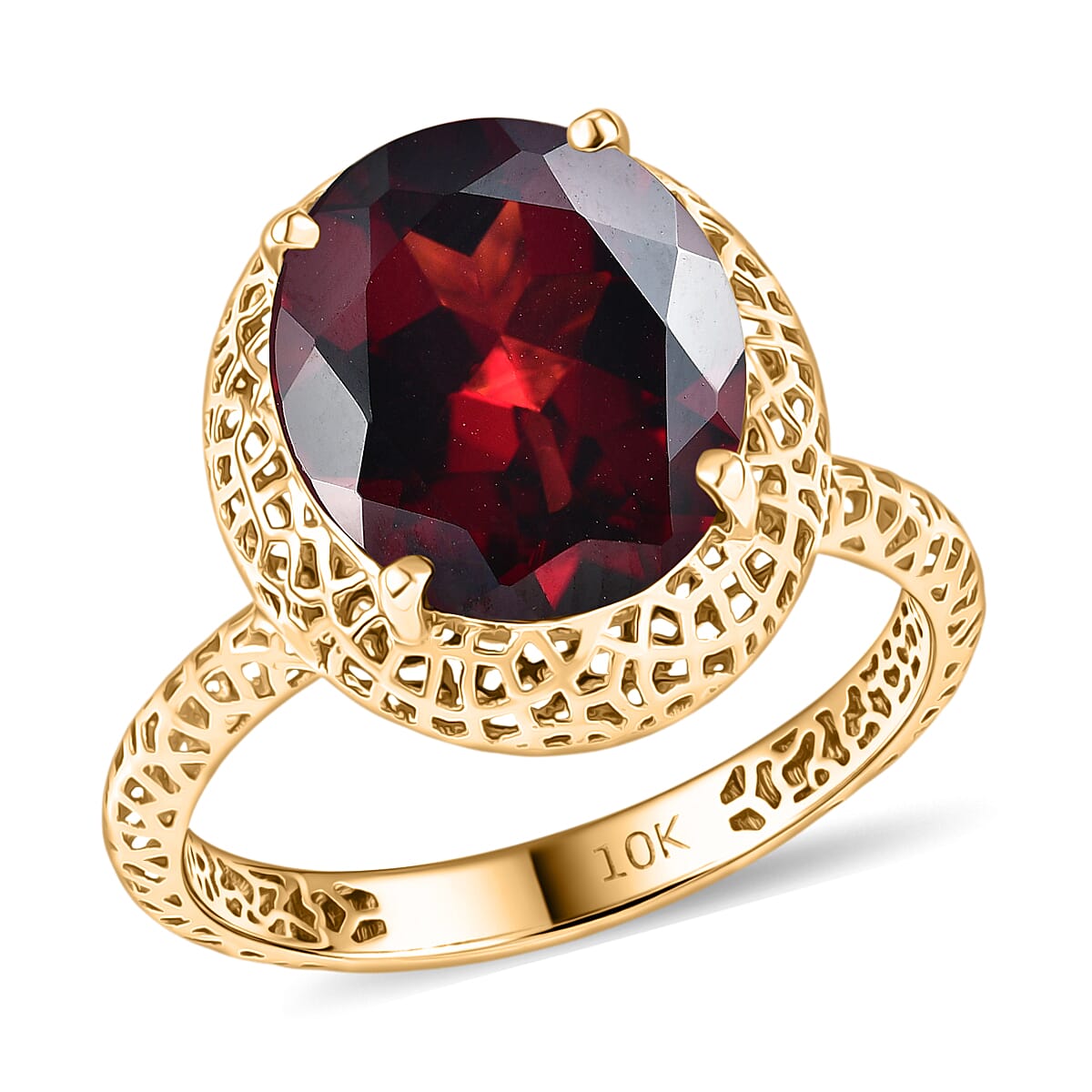 Mirage Collection 10K Yellow Gold Premium Mozambique Garnet Ring 5.30 ctw