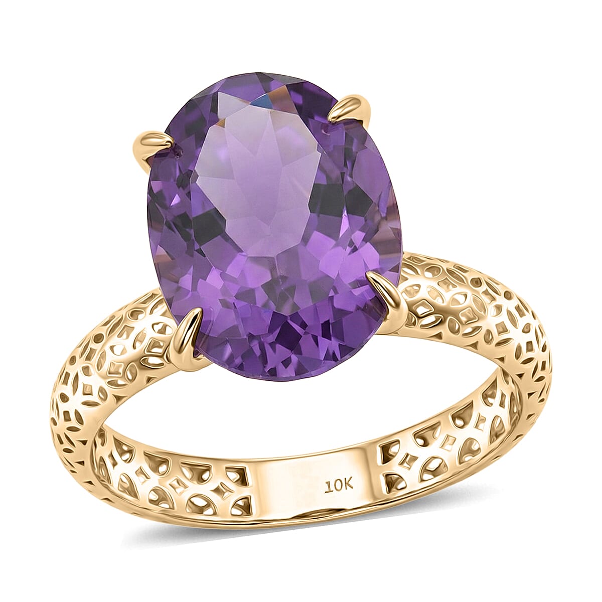 Mirage Collection Premium Lusaka Amethyst 5.20 ctw Solitaire Ring in 10K Yellow Gold (Size 9.0)