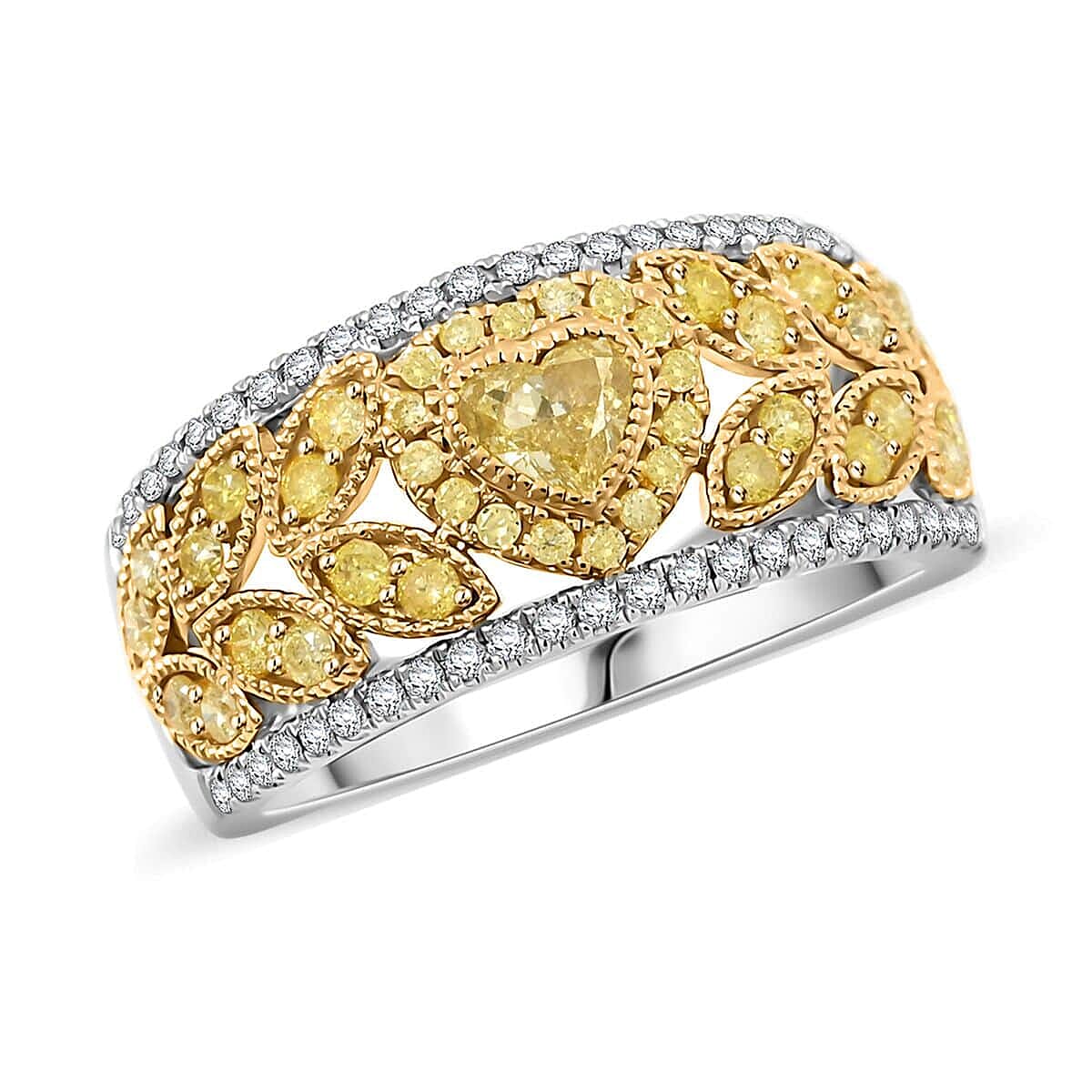 Modani 14K Yellow and White Gold Natural Yellow Diamond, White Diamond (I1) Ring (Size 6.5) 1.00 ctw
