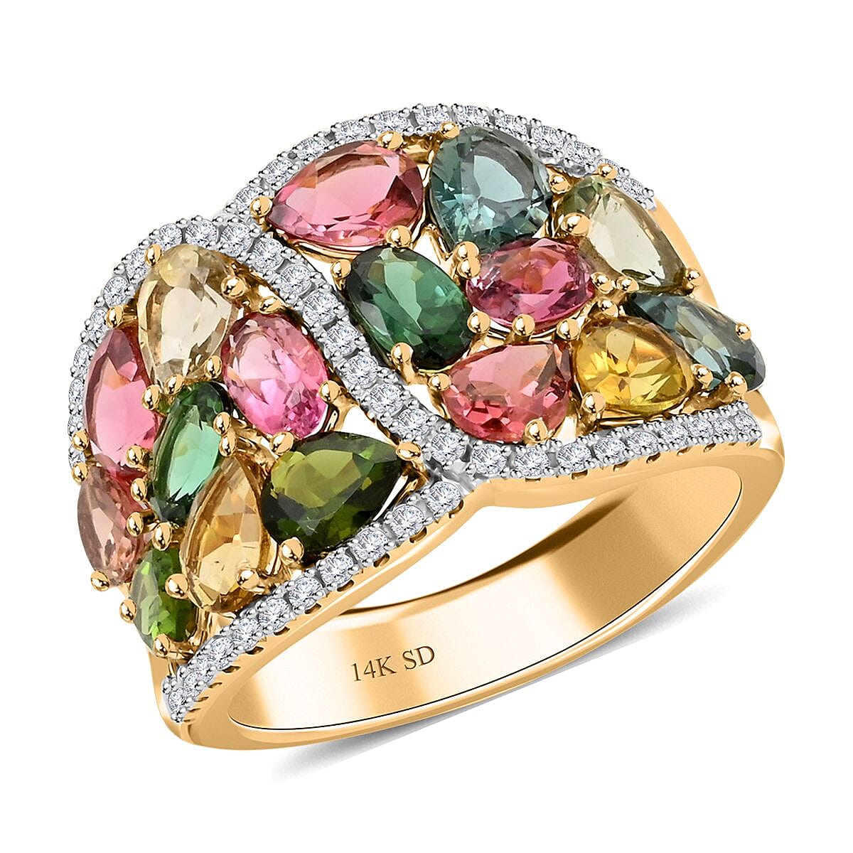 Modani 14K Yellow Gold Multi-Tourmaline and Diamond Ring (Size 5.0) 5.60 Grams 4.50 ctw