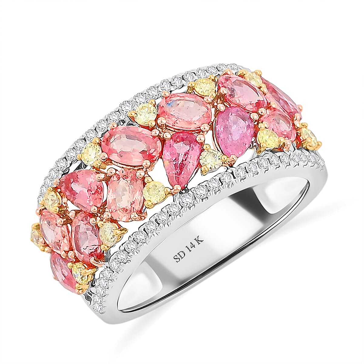Modani 14K Yellow, White Gold Padparadscha Sapphire, I2-I3 Natural Yellow and White Diamond Ring 6 Grams 3.15 ctw