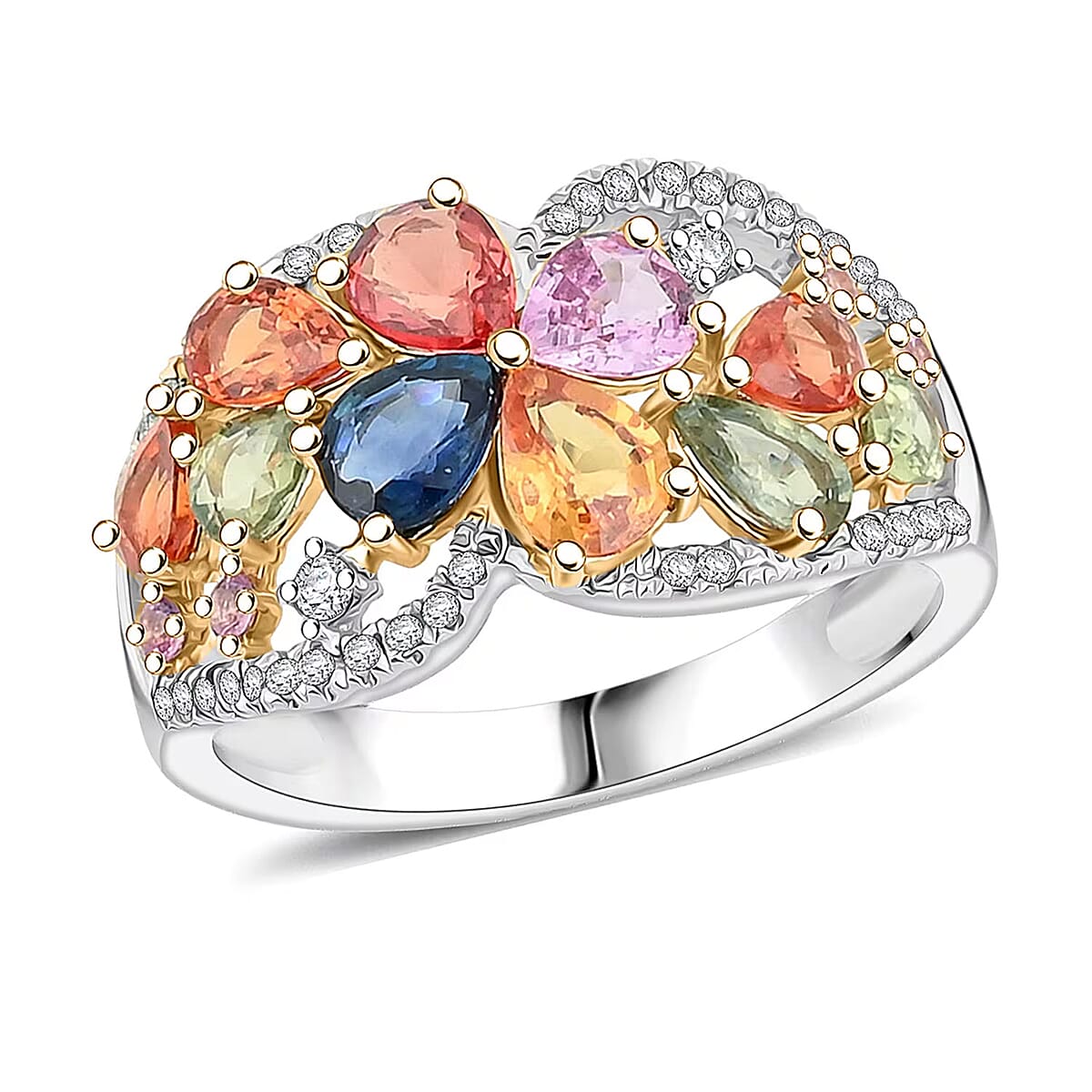 Flaunt the Modani multi-sapphire ring in dual metal. This luxury multi-gemstone ring creates an impression of refined taste and elegance. You'll cherish how this two-tone gold ring becomes a symbol of distinction.