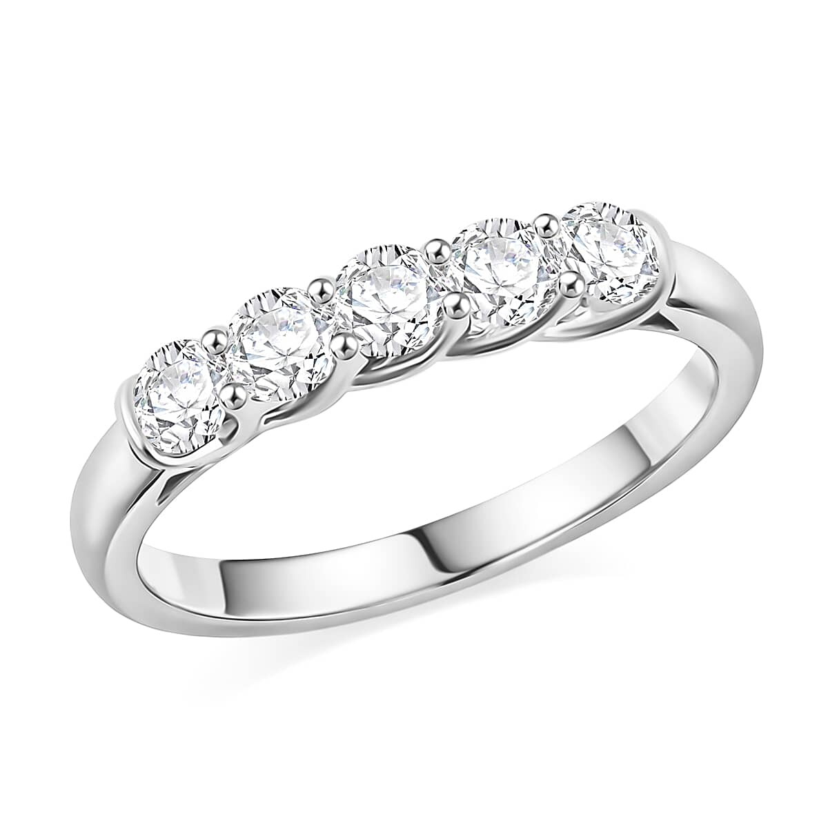 Elevate your style with this Modani diamond ring in 950 platinum. This elegant 5-stone ring for women sparkles with VVS2 diamonds for timeless elegance. Perfect as a wedding band or statement piece.