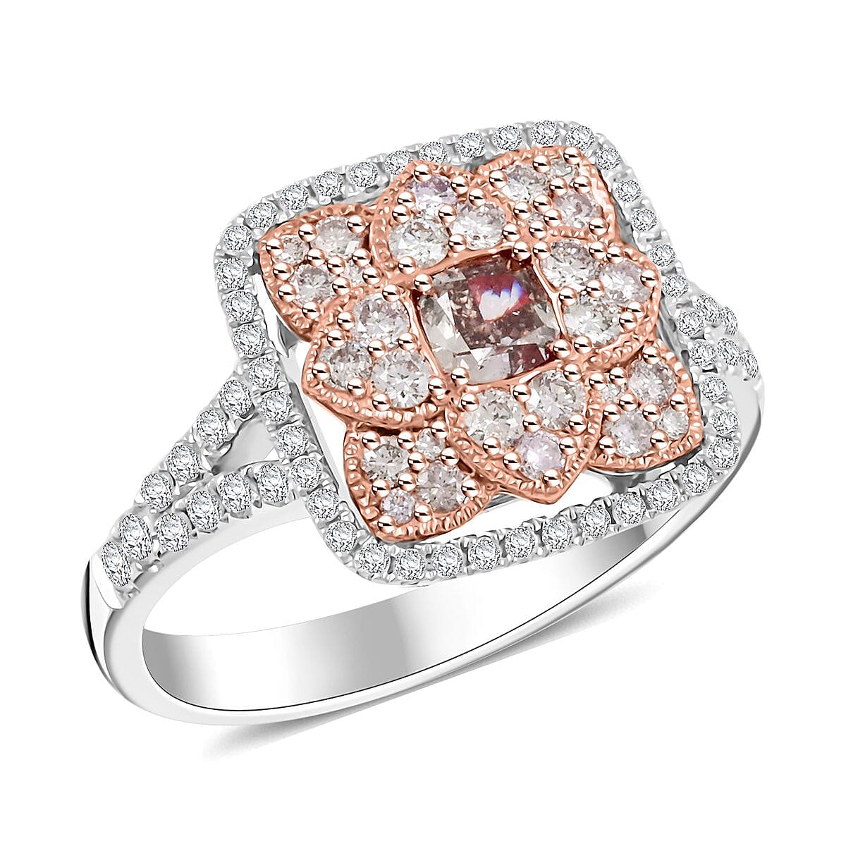 Modani Natural Pink and White Diamond 1.00 ctw Ring in 14K White and Rose Gold (Size 5.0) 4.40 Grams