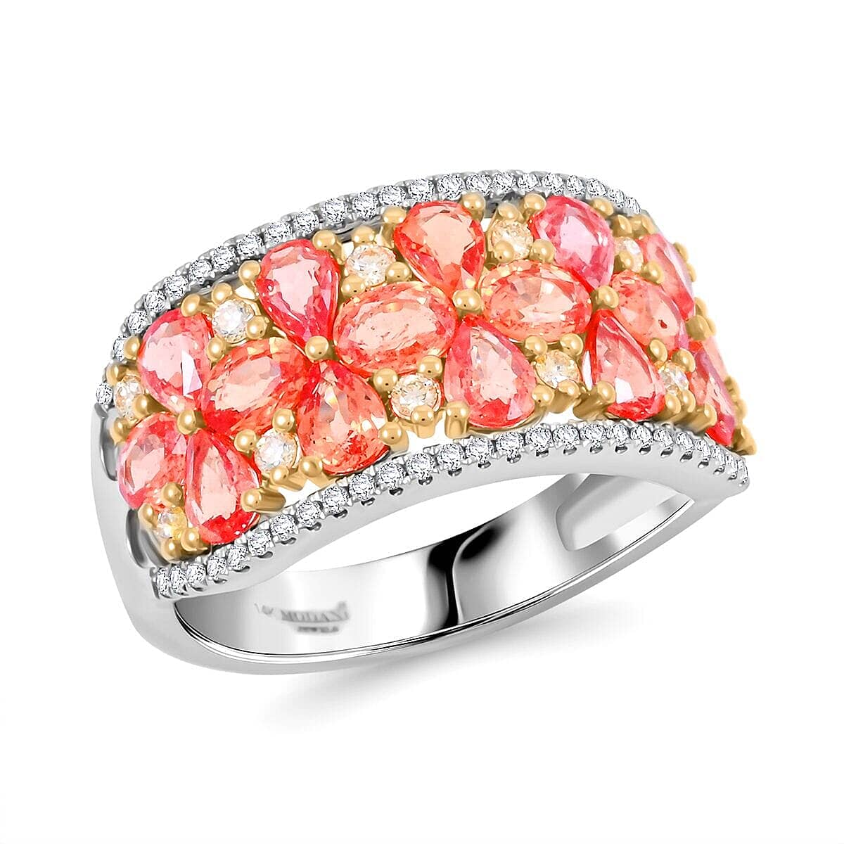 Modani Padparadscha Sapphire, Natural Yellow and White Diamond Ring in 14K White and Yellow Gold 3.09 ctw (Size 11.5)