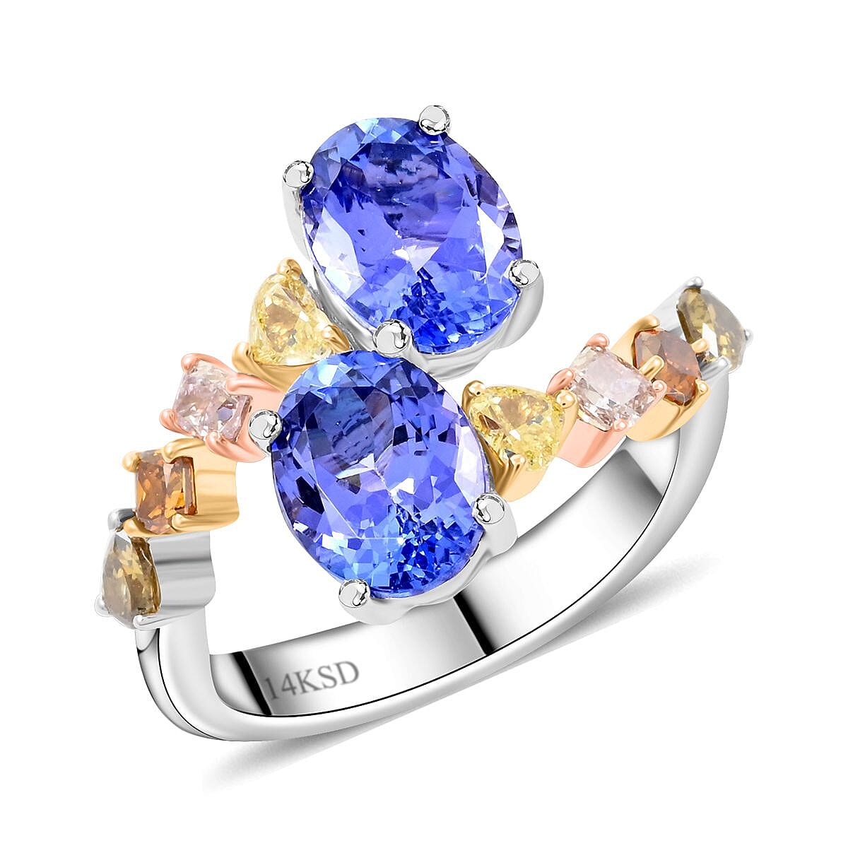 Modani Tanzanite and I2-I3 Multi Diamond 2.90 ctw Ring in 14K Yellow, White and Rose Gold (Size 7.0) 4.20 Grams