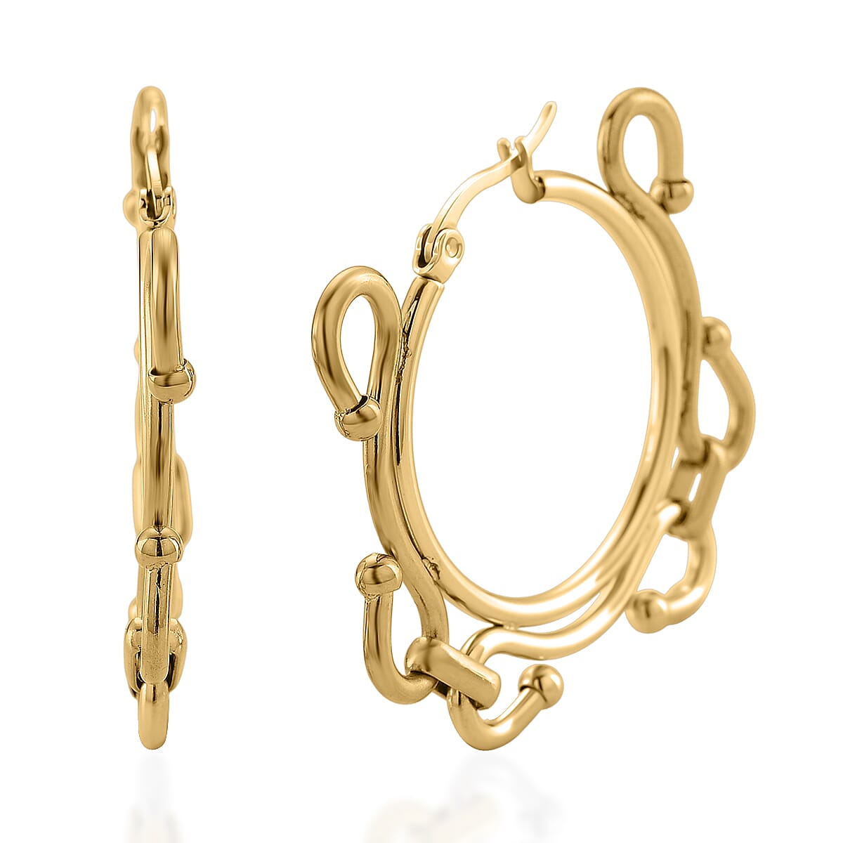 Modern Wave Link Hoop Earrings in ION Plated YG Stainless Steel