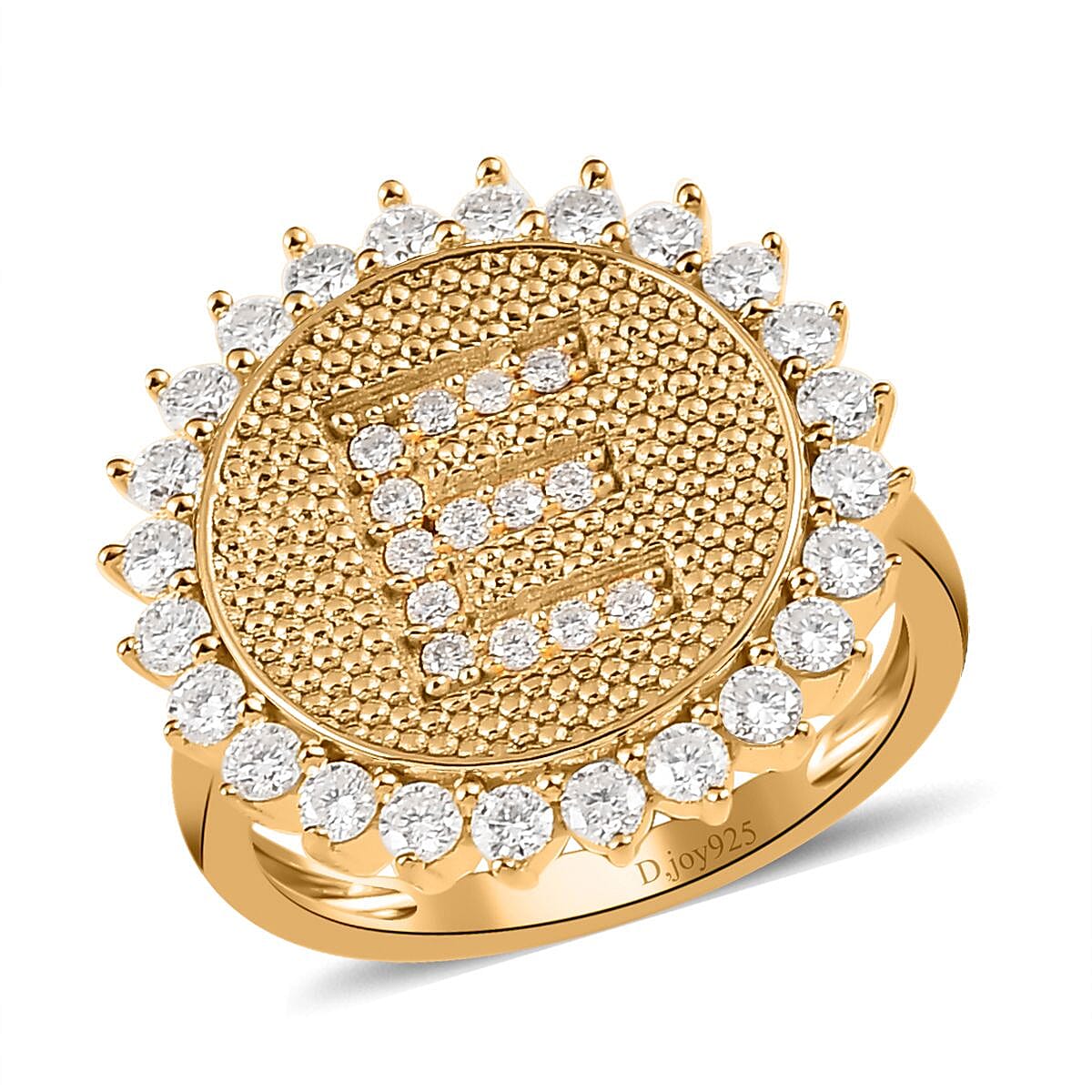 Moissanite 0.70 ctw Initial E Sun Medallion Coin Ring in Vermeil Yellow Gold Over Sterling Silver (Size 7.0)