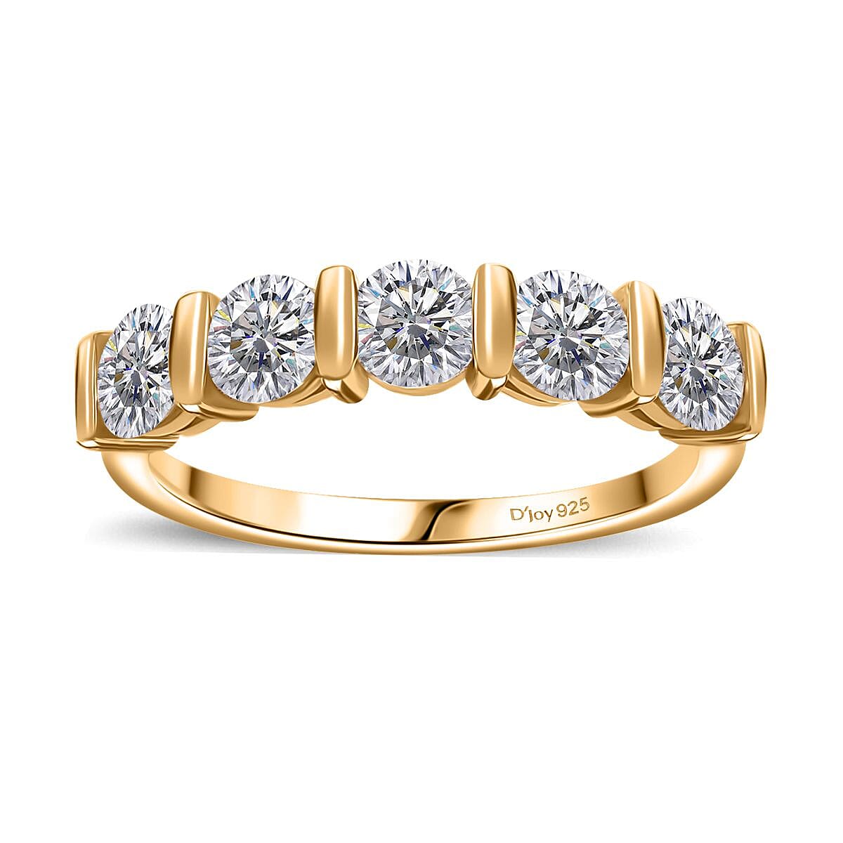 Moissanite 1.25 ctw Five Stone Ring in 18K Vermeil Yellow Gold Over Sterling Silver (Size 9.0)